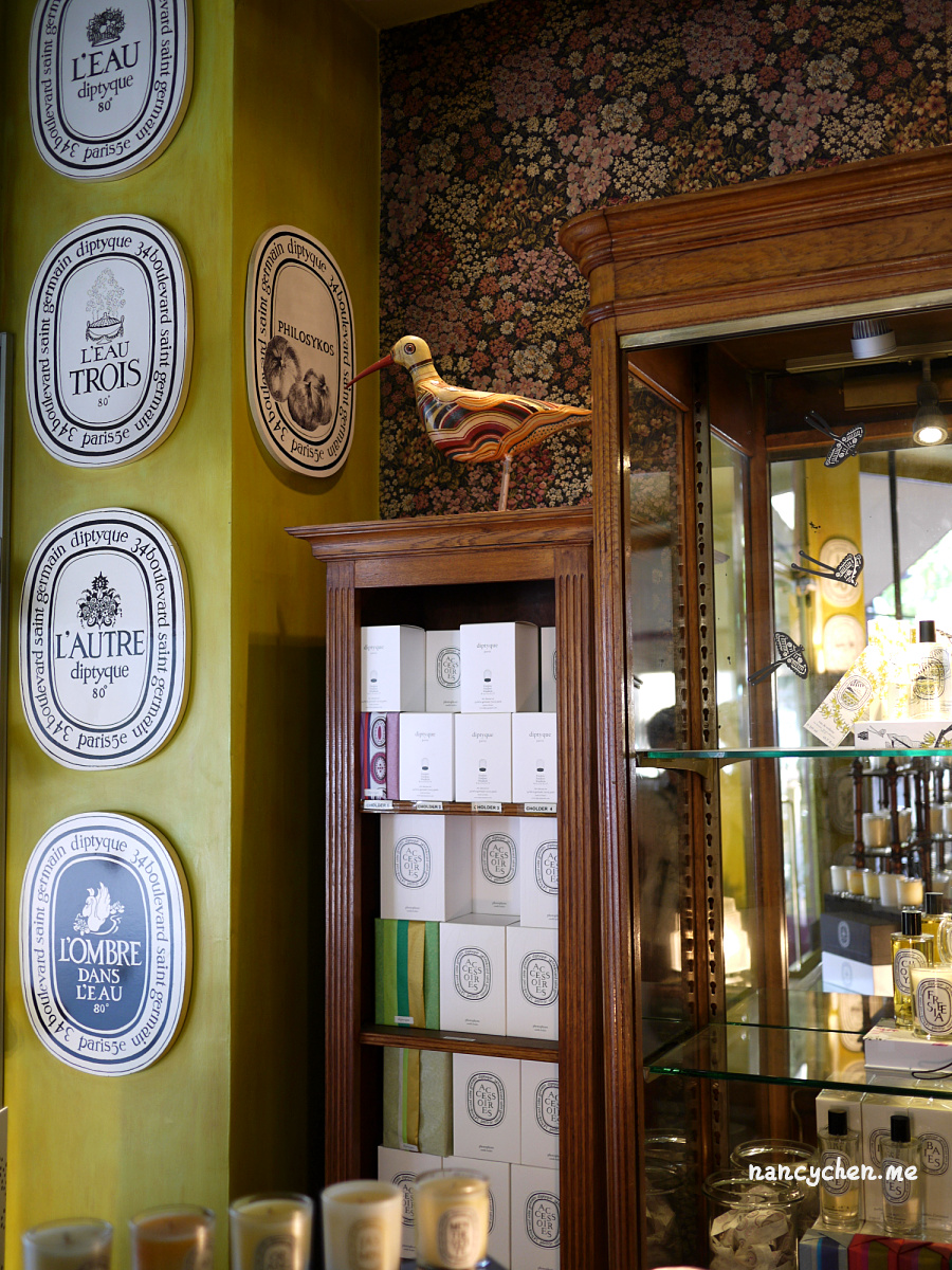 約好採訪的那天,穿上黑白相間的洋裝,特別噴上聖日耳曼大道34號的香水,坐地鐵到了前一站就提前下車;想在左岸好好地走一走,複習這裡的空氣和溫度,心理也調整到最能與diptyque對話的頻率。熟悉的酒紅色三角窗,駐足深吸了一口氣,推開門,輕聲說:「Bonjour♥」,正式進入diptyque的奇幻世界。