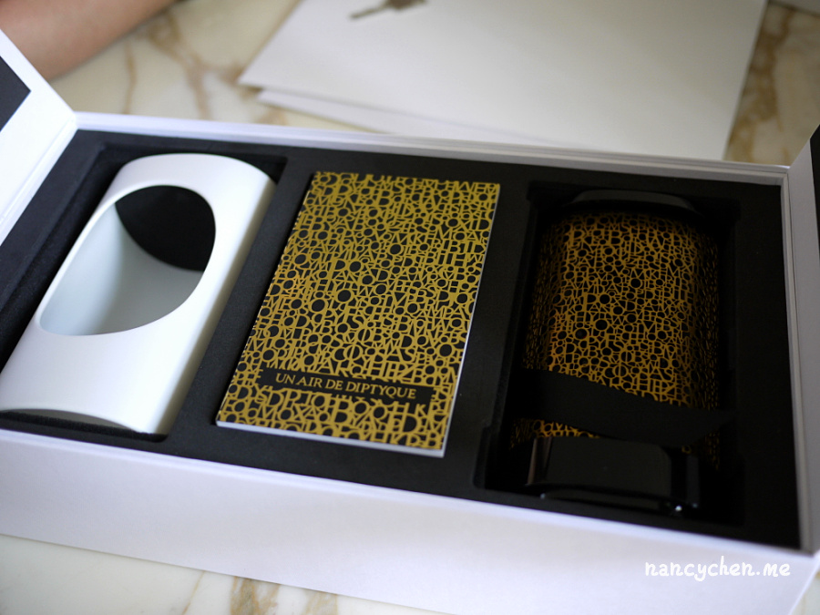 diptyque的每一個商品,都以香味展現了另一個國度、某一段時光、還有一種無可取代的情緒。 diptyque全球行銷經理緩緩地打開這個美麗又神秘的紙盒,一層一層,剝開這個他們號稱跨時代的居家香氛產品,「而且它不只是個香氛品,它更有著不亞於藝術品的迷人魔力。」