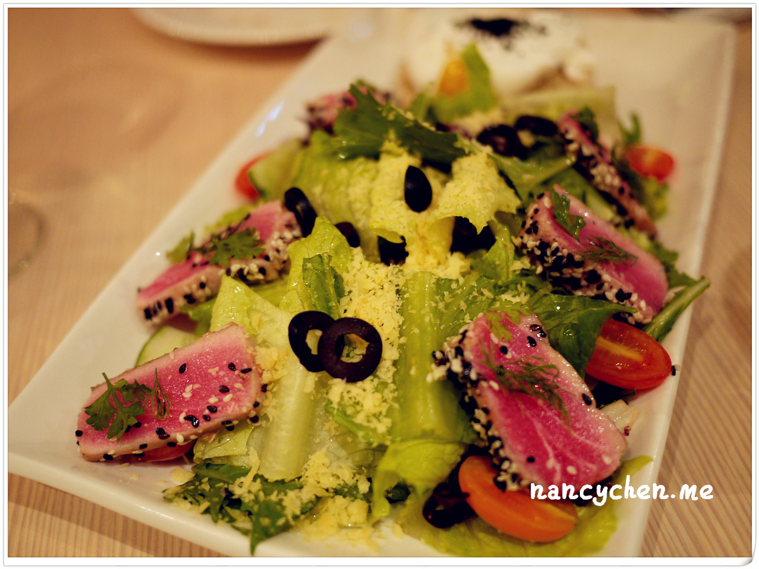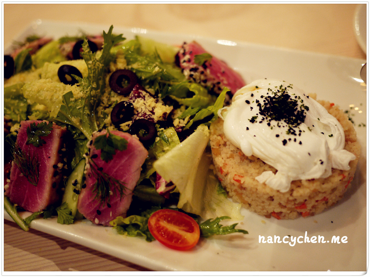 三道菜陸續上桌。清爽的LBB經典鮪魚沙拉,輕炙鮪魚配上各式蔬菜,開胃,不多著墨的調味,反而讓人品嚐到食物的原味,清甜、口感豐富,展現食材的高品質。還有我最愛的couscous ↓