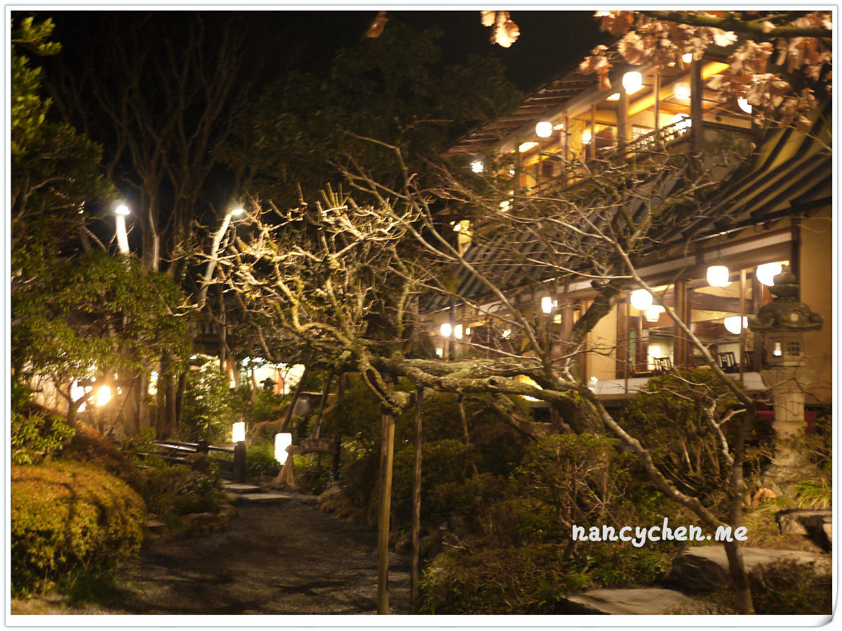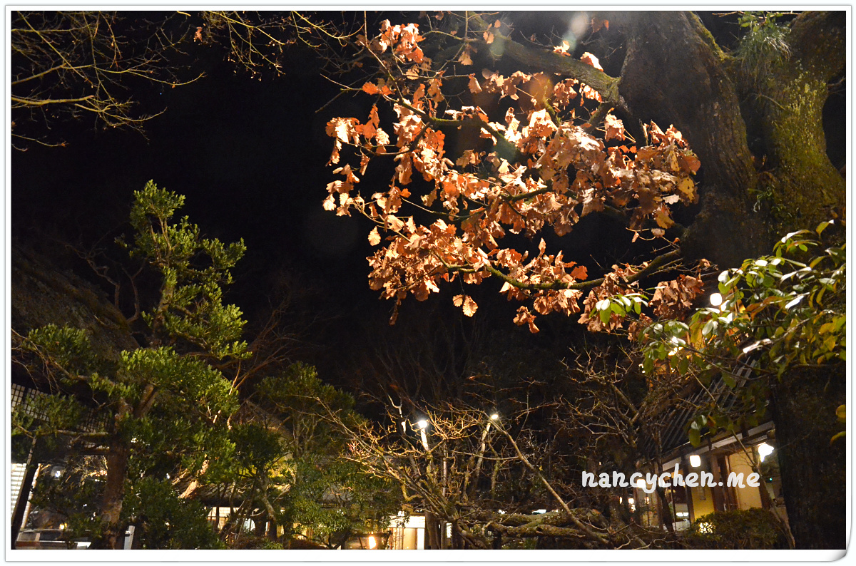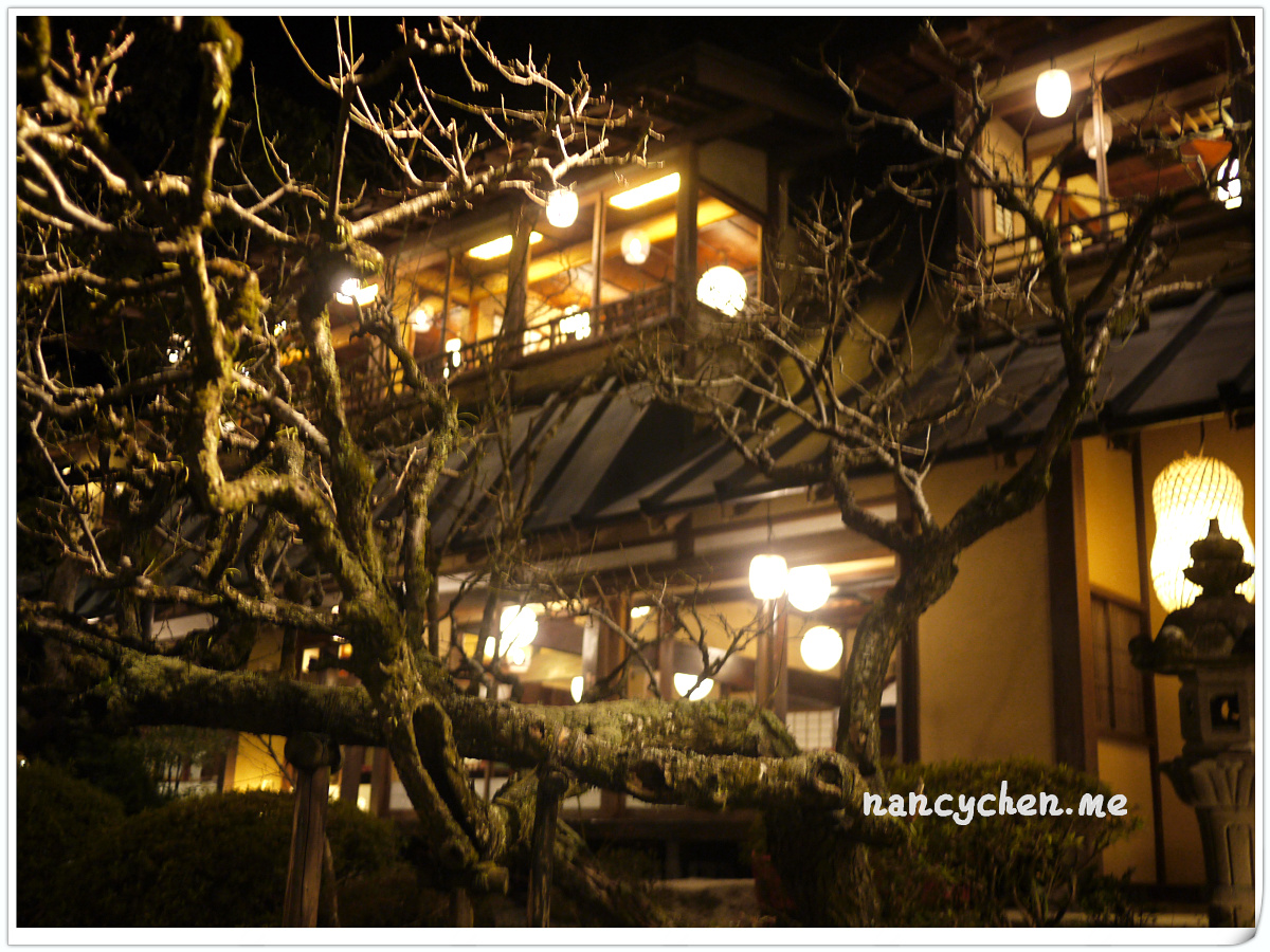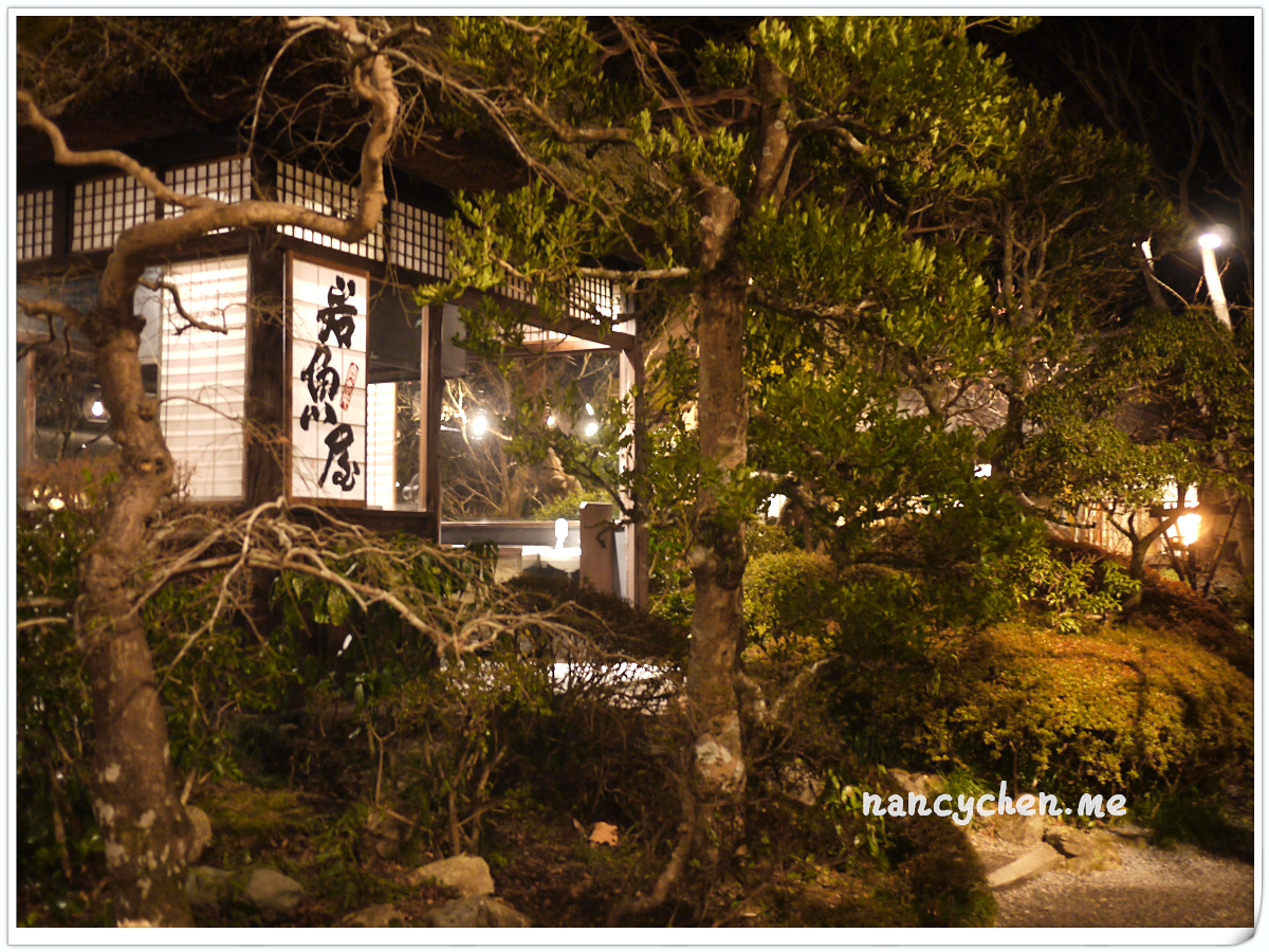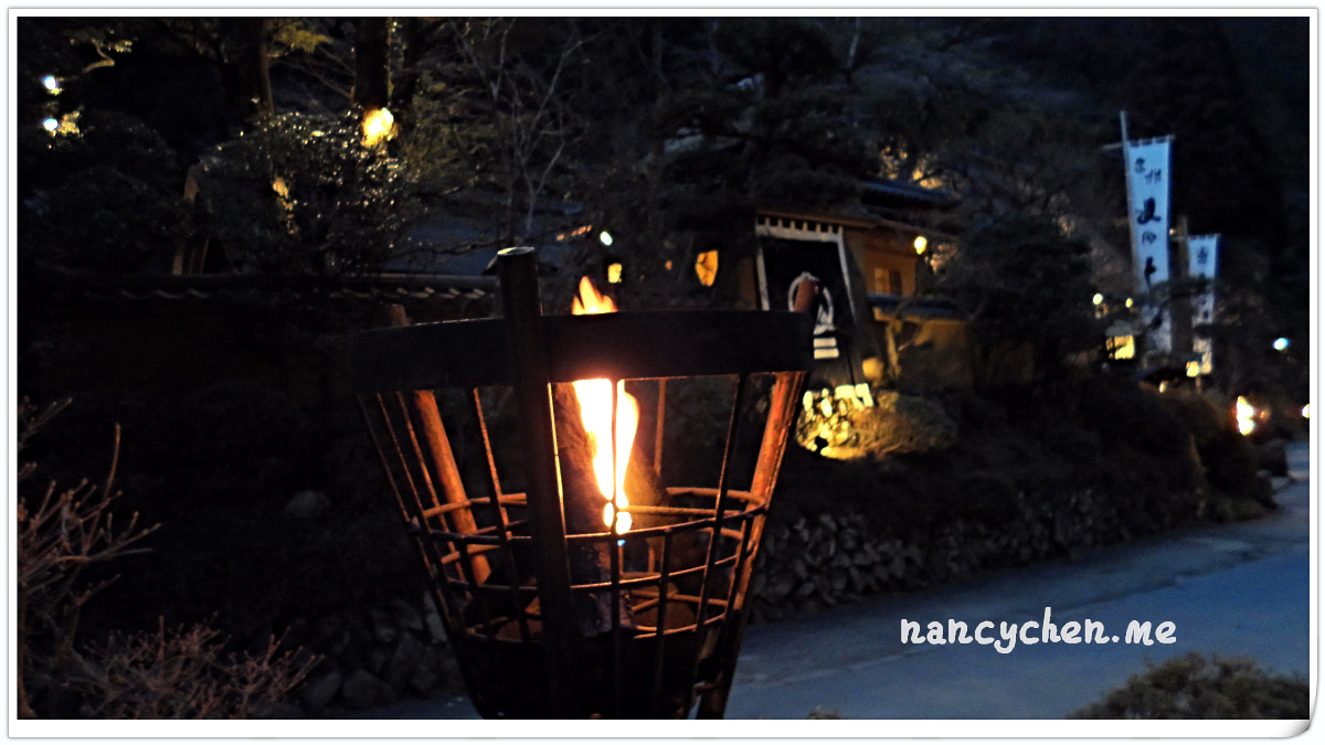 うかい(UKAI)可說是日本很有名的一個高級餐飲集團,而高尾山的這兩間餐廳,據說是うかい(UKAI)集團發跡的起源地,讓人特別好奇它呈現的料理與它擅長營造的極致氛圍。 「うかい鳥山 (UKAI Toriyama)」佔地6500坪,你沒看錯!是6500坪的日式庭園!我們到的時候已是日落時分,庭園裡點起一束束火炬,真有種與事隔絕的不真實感;標準日式庭園造景、小橋流水、還有特別從別處移來的合掌屋,再加上錯落於其中的獨立包廂,走進這個地方彷彿走進時光隧道。