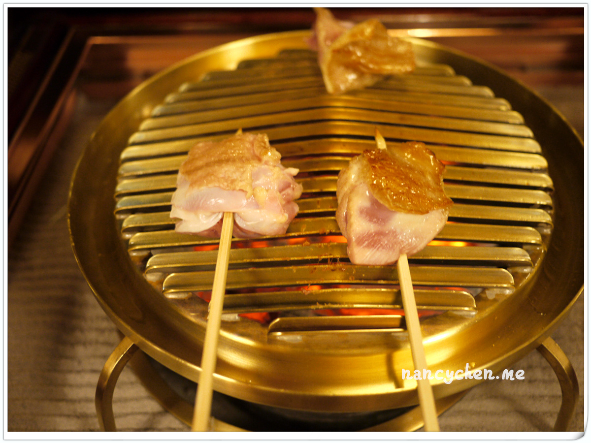 我們幾個人各別點了地雞與和牛的炭烤套餐,再點上清酒與梅酒,眼前是一片如夢似幻的日式景色,美好的夜,很容易展開。