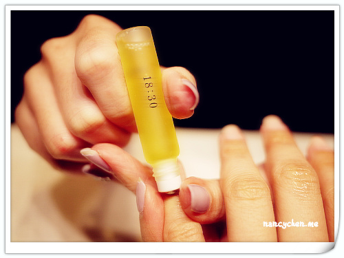 最後,uka明星商品—uka香氛保養精油隆重登場。uka香氛保養精油以時間軸為概念,提出一天中的不同時刻,需要以不同的精油陪伴,或提振精神、或抒壓助眠,很詩意!美甲師詢問了喜歡的香氣,我選了「18:30」,玫瑰、天竺葵、柑橘合奏,很女性化、很輕盈,譜出一曲平衡身心的優雅舒適。指尖、指緣、指腹全像敷著面膜,香氣天然沉穩,漂亮地展現了uka芬香療法的概念。