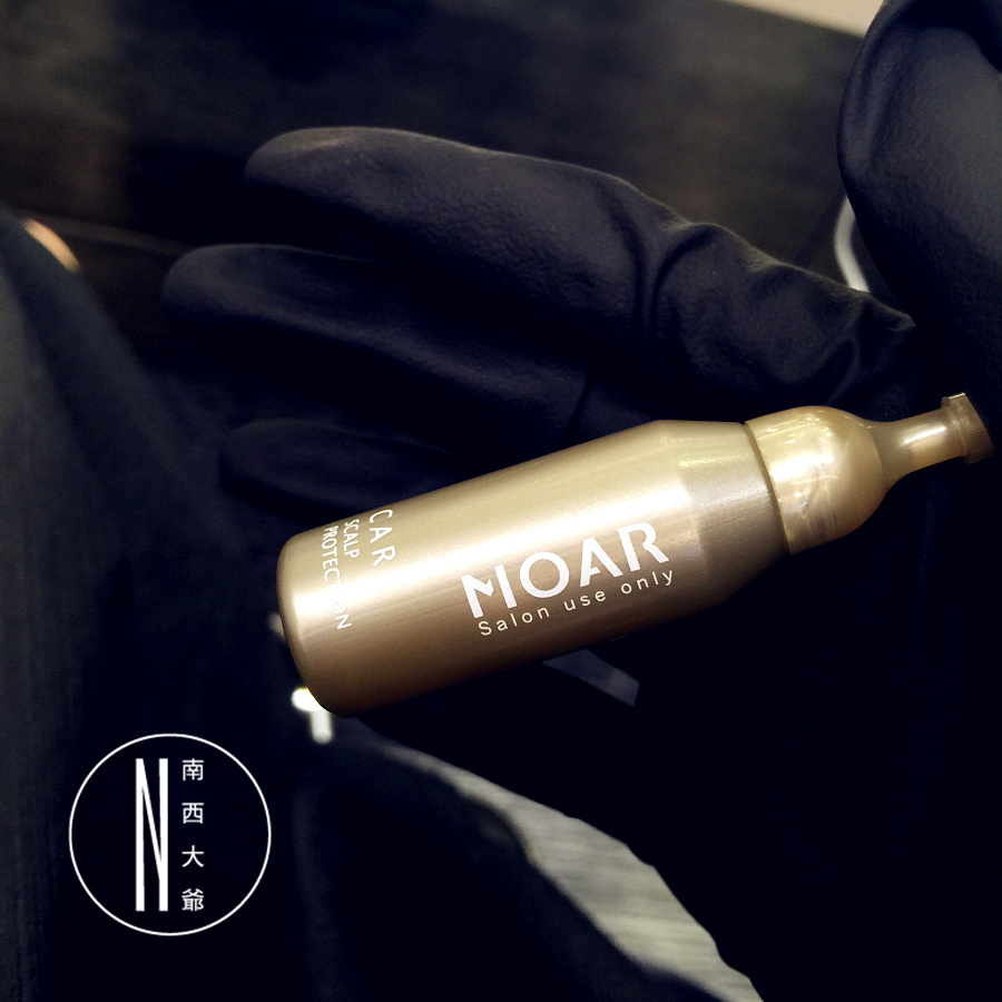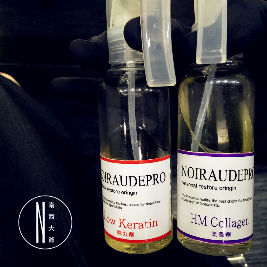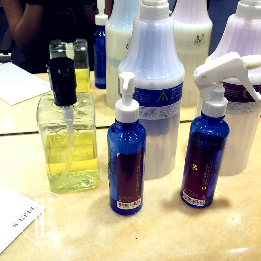 等到頭髮過色了,也洗淨染劑後,就開始體驗兩種不同的護髮:首先是晶鑽護髮。MUCOTA晶鑽護髮分為4劑,內含蠶絲蛋白、珍珠蛋白、高保濕分子等多重成分,幫毛髮做大掃除,去除過氧化氫、殘留鹼性藥劑或矽靈;更補充油脂、加強保濕、增強頭髮彈性及強度等。我覺得這組染髮效果非常顯著,我以前是不太相信護髮的人,但這一組密集護髮讓我改觀!