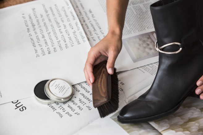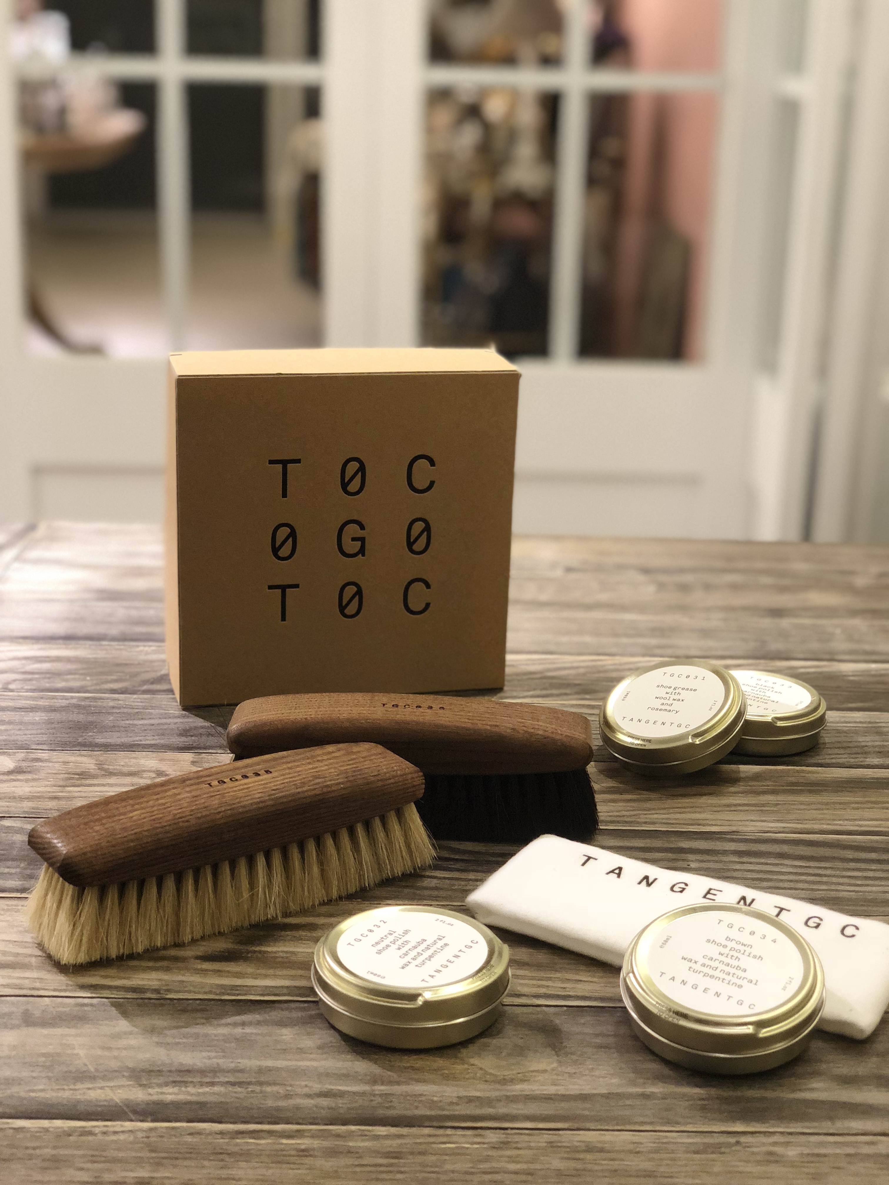 ↑ 這是 TANGENTGC 最經典的 《風行》鞋靴保養組,包含天然鞋油、淡色系鞋靴亮光蠟、黑色系鞋靴亮光蠟、棕色系鞋靴亮光蠟、淡色系鞋靴馬毛刷、深色系鞋靴馬毛刷、拭鞋布。https://goo.gl/ecpELX